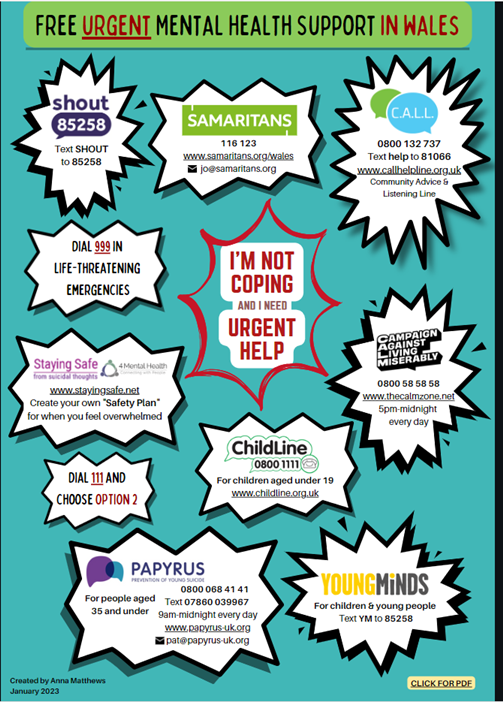 For free Welsh Government supported service to help you to return to work sooner when struggling with your Mental Health, click on the link below to access RCS Wales support services or telephone them direct on 01745 336442.